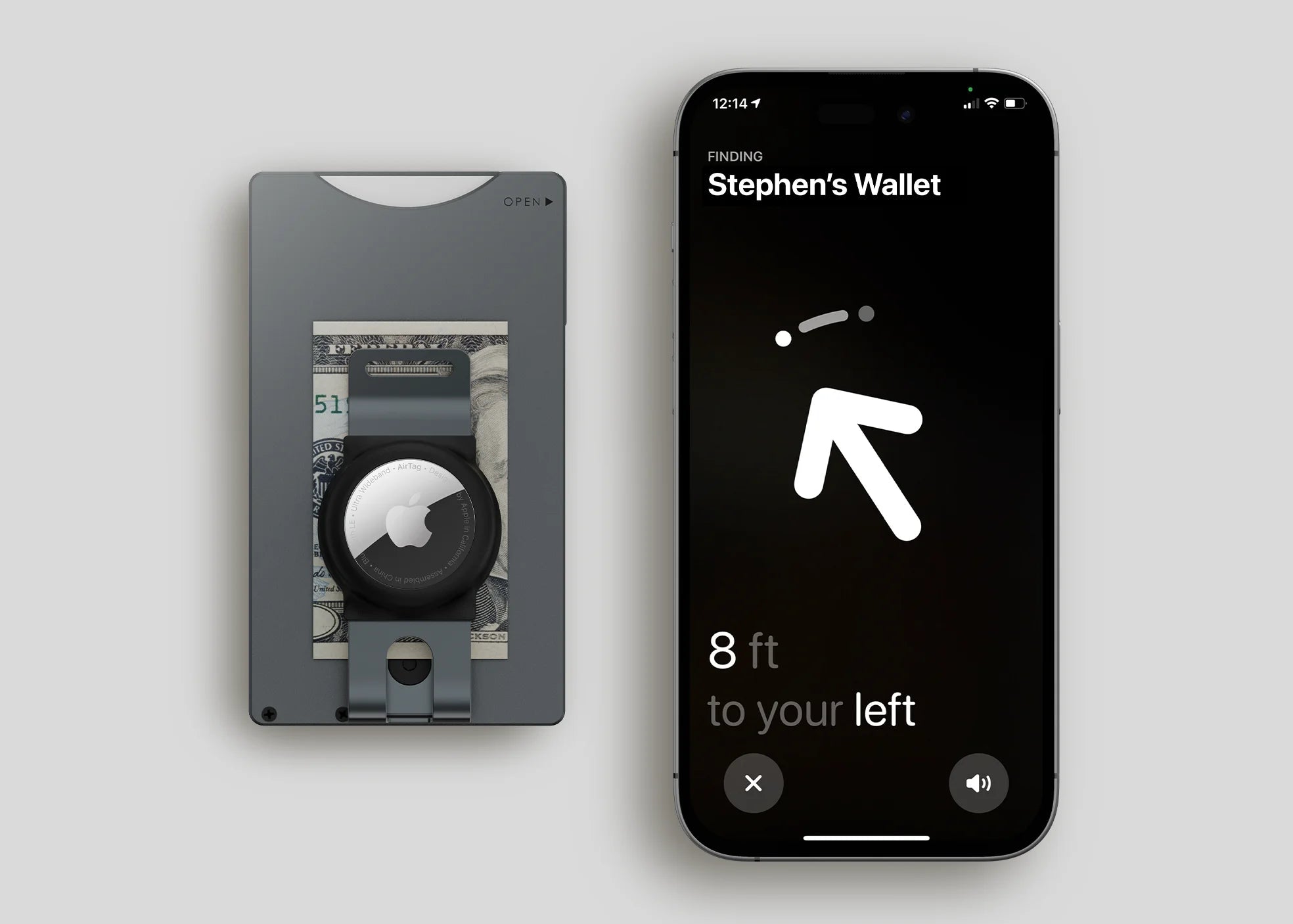 The optional AirTag holder can be installed together with the money clip, utilizing the Find My network to help you locate your Shuffle Wallet with ease.